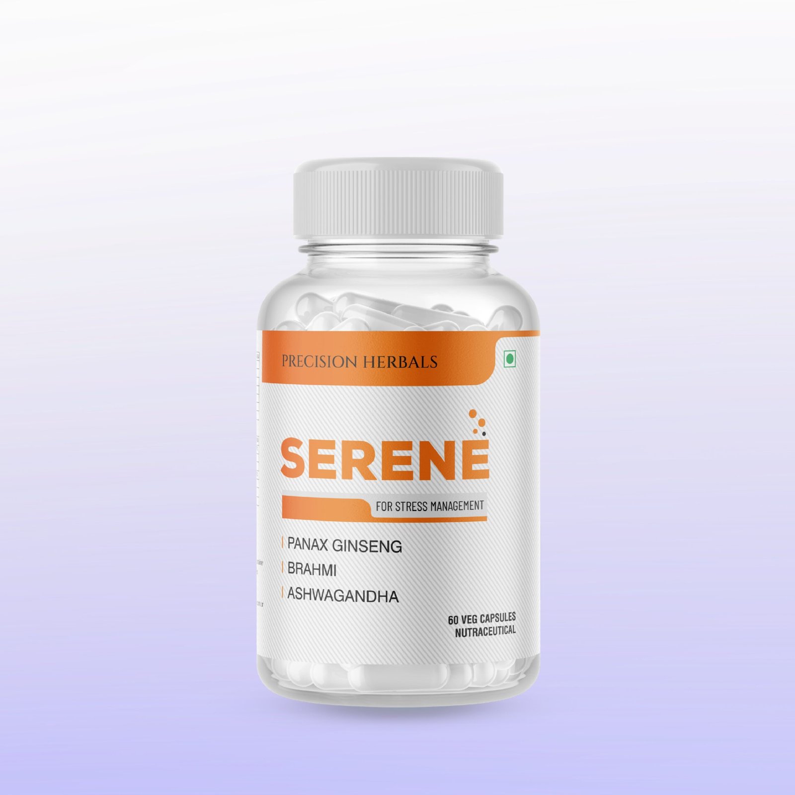 Serene | Stress Management | Herbal Formula | Non-habit forming | Reduces stress and anxiety | Improves mood | 60 vegetarian capsules